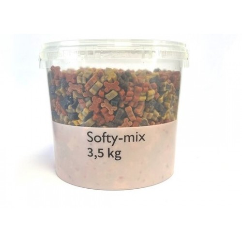 Softy Mix is een uitermate geschikt beloningssnoepje voor kleine honden. Door de zachte structuur kunt u uw hond snel en eenvoudig belonen bij goed gedrag. In het handige bewaaremmertje met deksel voorkomt u uitdroging van de snacks en blijven ze een gewilde traktatie voor uw hond. Gebruik de snoepjes bij de hondentraining, verstop ze in een Kong of hondenspel of geef ze gewoon als verwennerij.