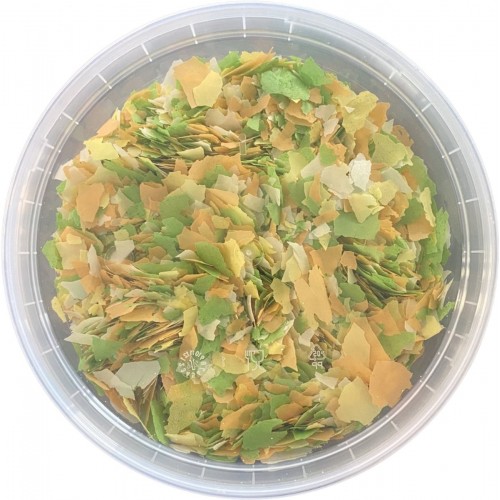 Versterkt de kleur: De vlokken bevatten natuurlijke pigmenten, zoals carotenoïden, die helpen bij het versterken van de kleuren van de vissen, zodat ze levendig en mooi blijven.