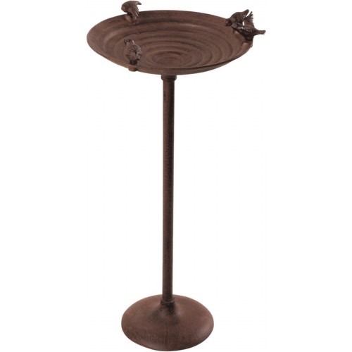 Dit vogelbad is een prachtige, decoratieve aanvulling op je tuin dankzij zijn klassieke uitstraling, terwijl door voer en water ook vogels worden aangetrokken. Het vogelbadje met antieke uitstraling heeft 4 decoratieve vogelfiguren en een strakke standaard met roestachtige afwerking. De binnenkant van de kom heeft een geribbeld oppervlak om de vogels goede grip te bieden. Plaats deze opvallende vogelvoerder dichtbij je raam of terras, zodat je kan genieten van het kijken naar de etende, drinkende en zwemmende vogels. Geschikt als vogelbad of voerbak. Montage is vereist.